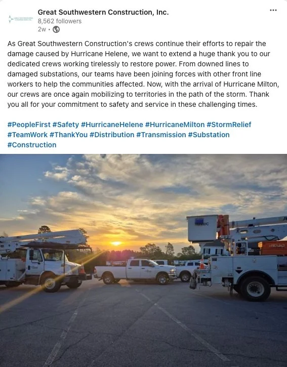 Take a look at this LinkedIn post from Great Southwestern Construction: